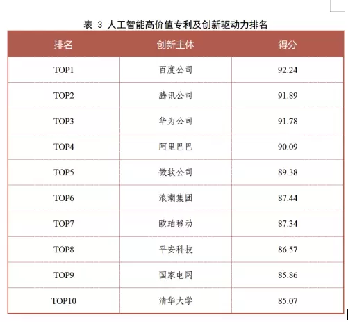在人工智能产业技术的细分领域中,报告显示,百度也呈现出明显优势。