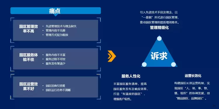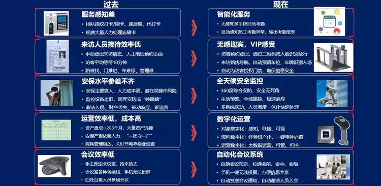 传统园区的信息化建设往往是孤立的烟囱式子系统建设,系统架构中数据不互通,业务难融合,长期面临服务体验差、综合安防弱、运营效率低、管理成本高、业务创新难等痛点。而如何能够精准运用数据,叠加IT、OT的先进能力来驱动园区智慧化运营,则成为园区运营方及业务厂商共同思考的方向。