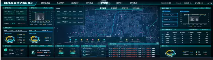 走进邢台市智慧城市运营管理中心,一个巨大的屏幕上展示着邢台的全市域地图、城市运行、经济指标、亩产效益、城市管理、公共安全、政务服务、民生服务、疫情防控等全城各领域的数据信息,整座城市的运行状况一目了然,这就是邢台市的“城市大脑”。