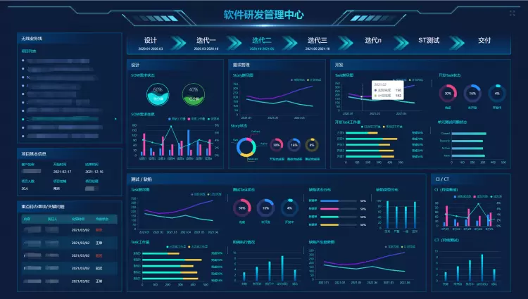 为了全面支撑软件工厂的高效运营,中软国际围绕软件工厂业务全流程,打造了涵盖人资作业支撑平台、项目作业管理平台、度量系统、项目管理平台、领导驾驶舱等IT工具装备,为企业提供研发外包可视化、数字化生产线。