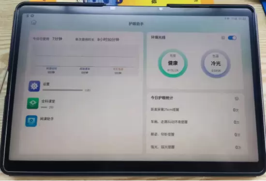 说到这里,可以会有家长问了,每天让孩子用这么久的学习机,不会对他们的视力造成损伤吗?这里就不得不提一下科大讯飞AI学习机T10强大的护眼配置了,其正面搭载了一块13英寸的高清润眼屏,可以有效抵御蓝光伤害。机身上分布的四颗护眼传感器配合着多项护眼功能,能够全天候呵护孩子的视力健康,每当他们距离过近、学习姿势不对或者环境光线过暗等,它就会发出提醒,帮助孩子及时调整。护眼效果得到了中国泰瑞特和德国莱茵TUV国内国际双认证。