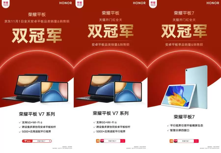开门红!荣耀平板斩获11月1日天猫京东安卓平板双冠军