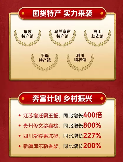 与此同时,各大国货特产也迎来逆袭,销量节节攀升。东坡特产馆、乌兰察布特产馆、白山助农馆、平遥特产馆、利川助农馆凭借突出的销售业绩,霸占特产馆店铺销量榜前五!