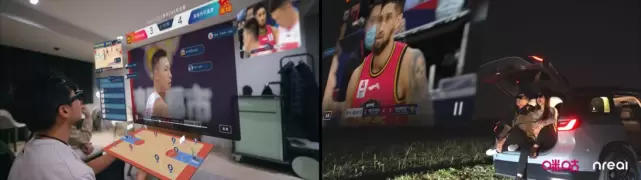 刘昕介绍,Nreal Air AR眼镜可以为多元场景带来沉浸式应用体验。如果你是一位体育迷,戴上Nreal Air,选择一场你喜欢的NBA或CBA赛事内容,使用手机即可实现观赛区、社交互动、球队球员数据、商品展示、沙盘等不同区域的自由切换。在选定自己喜爱的观赛视角后,便可以与好友一边看球一边聊天,还能实时查看赛事数据,下单心仪的赛事周边产品,边看边买,体验身临其境的全新体育观赛氛围。