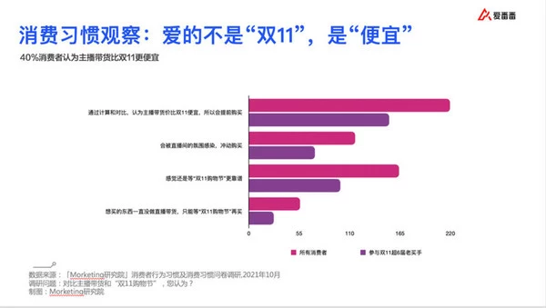 报告显示,通过计算和对比,40%的消费者认为主播带货比双11便宜。此外,关注品牌方社交/短视频平台账号正在成为消费者“备战双11”的新阵地,这也就不难解释,为何品牌自播这一形式交出了一份不错的答卷,私域正在被越来越多的品牌与商家拥抱。