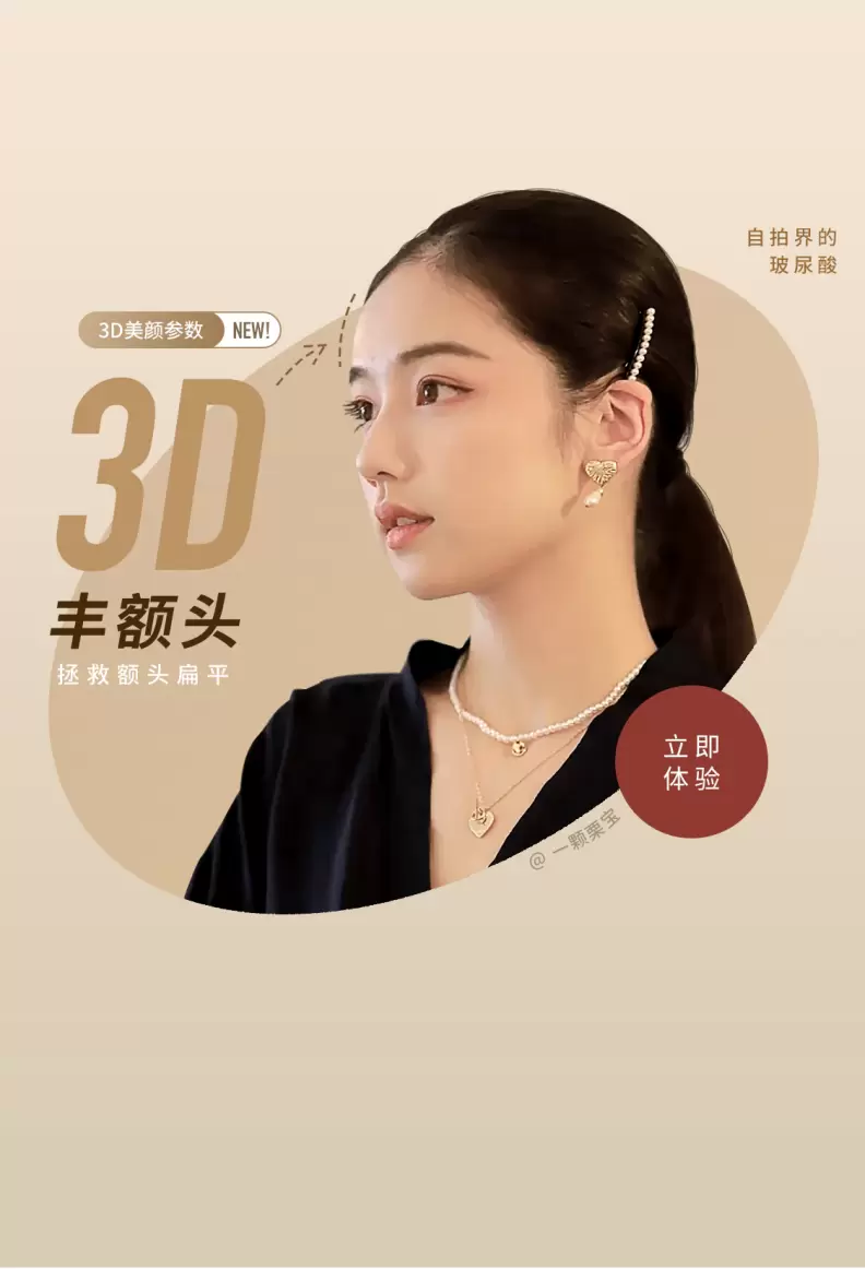 同样借助3D技术打造的3D丰额头功能,贴合用户的审美趋势。通过手动调节额头的丰盈程度,用户可以获得具有针对性的精细化调整服务。