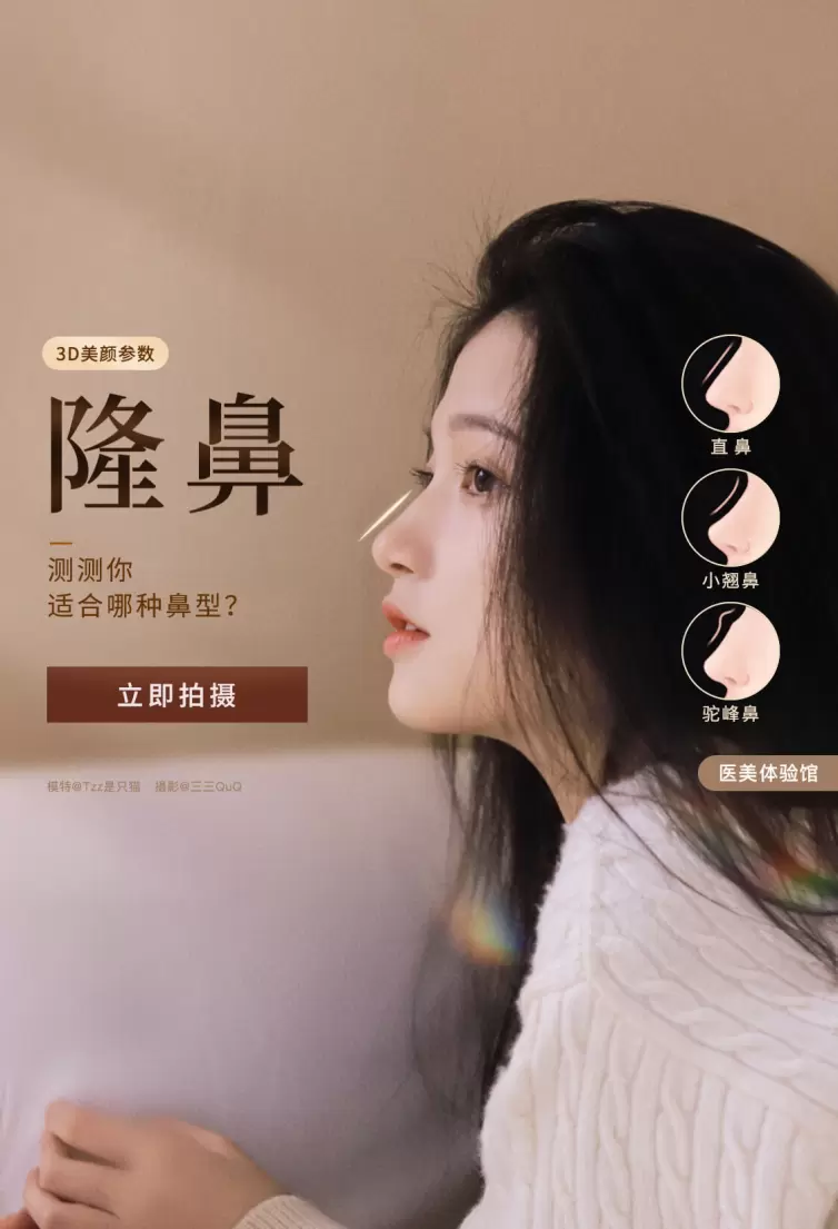 在3D技术的加持下,美颜相机推出的3D隆鼻功能打造了直鼻、小翘鼻、驼峰鼻三款效果,满足用户的个性化变美需求。该功能还能够适应多种光照和不同角度,完美呈现出自然的隆鼻效果。