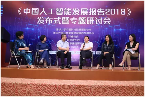 清华大学科研院院长周羽教授首先代表学校致欢迎辞,中国工程院院士、中国科学院计算所原所长、中国计算机学会名誉理事长李国杰,原国家科技部党组成员、中国科技体制改革研究会理事长张景安分别做了题为“如何加快人工智能自主创新,使人工智能成为发展新动能”以及“全球视野下的人工智能发展”的特邀报告。发布会上举行了两场专题对话会,现场嘉宾还就报告内容和相关话题进行了热烈讨论,并与现场听众展开互动。第一场对话主题为“人工智能相关的科技、人才与产业问题”,就中国人工智能发展优势、中国人工智能产业发展面临的问题以及如何加强人才培养、突破核心技术等话题进行了讨论。