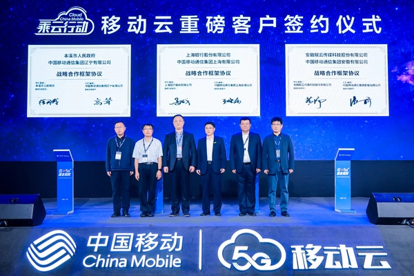 论坛期间,中国移动与顺丰集团、猫眼视觉签订战略合作协议,在通信和信息化、新型通信基础设施建设、5G行业应用及业务协同拓展等方面达成合作,与本溪市政府、上海银行、宁波银行等十余家企业举行业务签约仪式,启动“企业乘云行动”,与合作伙伴携手推动中国企业智慧上云、安心用云。