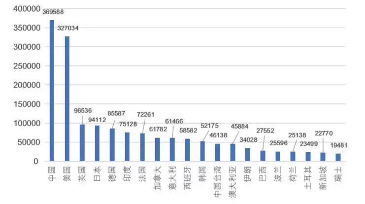 专利上,中国已经成为全球人工智能专利布局最多的国家,数量略微领先于美国和日本;