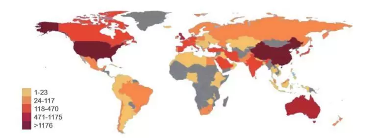 全球人工智能企业分布(单位:家)
