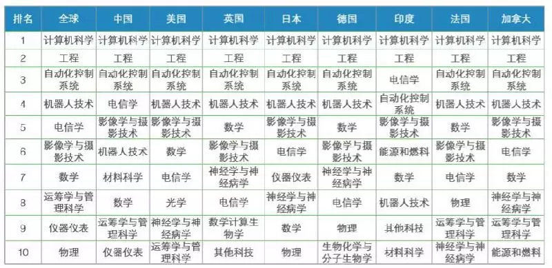 从学科分布看,无论是全球还是论文产出量最多的8个国家在人工智能领域发表论文最多的两个学科都是计算机科学与工程。除印度外,自动控制系统是全球以及论文产出量最多的其余七国产出排名第三的学科。