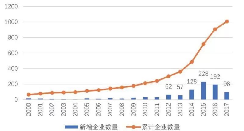 中国人工智能创业潮的集中在2012-2016年