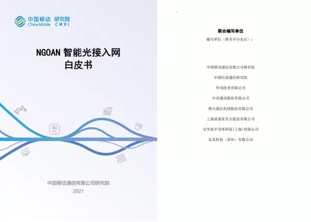 中国移动研究院联合合作伙伴发布《NGOAN智能光接入网白皮书》