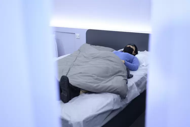 现场人员介绍柔灵科技现场展示的「黄金90」睡眠修复体验区,是设置30分钟或90分钟为一个睡眠周期,以柔灵科技的「纳米级AIOT脑电睡眠贴片」为核心,通过实时精准监测了解体验者的脑电及睡眠状况,并根据监测出的综合数据做出反馈,利用关联APP个性化调整其他助眠软硬件设备,引导体验者完成一个完整黄金睡眠周期,并在合适时机自然唤醒,让体验者在有限时间内体验一次高质量睡眠。柔灵科技为“未来”提供了一套可定制的、个性化的科学睡眠健康管理方案。而柔灵科技研发的“柔性脑电睡眠贴片”正是这套方案的核心。它基于柔性轻便的纳米级柔性材料,是一组超薄,可拉伸的干电极,拥有优秀的佩戴舒适性,并可用于脑电(EEG)、心电(ECG),肌电(EMG)等生理信号的长期精准测量并用于睡眠评估。依据长期累积的精准睡眠数据,让用户对自己睡眠整体状态可知可控。