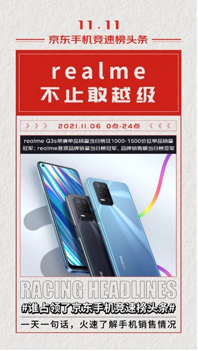 realme冲进京东11.11竞速榜 强势拿下品牌销量当日冠军