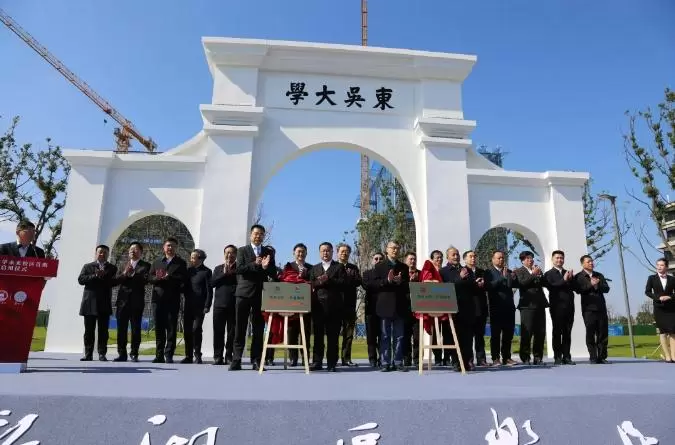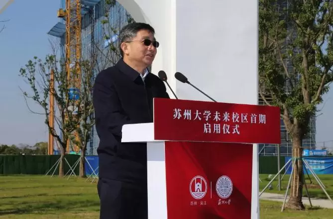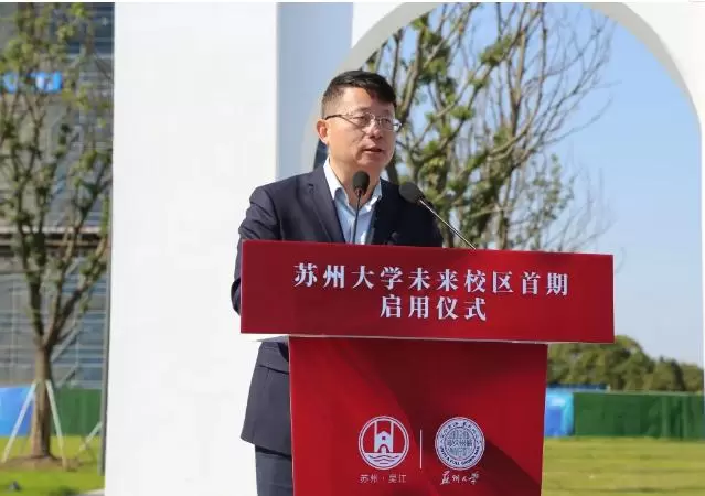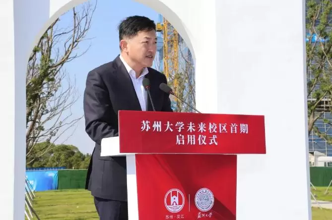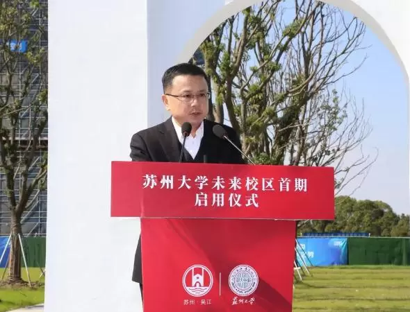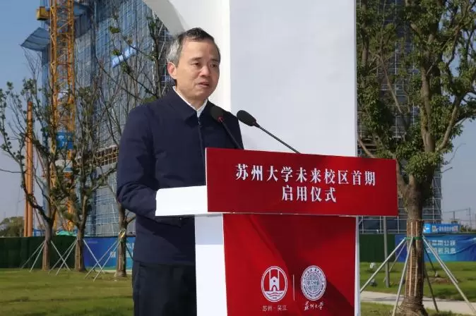本次揭牌仪式前,苏州大学未来校区举行了首期启用仪式,仪式由吴江区人民政府副区长陈建忠主持,吴江区委书记李铭、苏州大学党委书记江涌先后发表致辞。苏州大学党委常委、副校长沈明荣详细介绍了未来校区专业设置、招生计划、人才需求等发展规划。