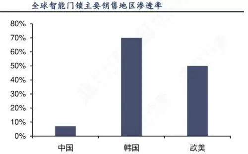 随着现代人对门锁的安全性、便利性的需求增加,迅速变成了年轻人必买的科技家居产品。数据显示,2019年国内智能门锁市场渗透率仅达到7%,而同期韩国等成熟市场渗透率高达70%,欧美市场渗透率也达到了50%,国内智能锁的市场增长空间具有广阔的前景。