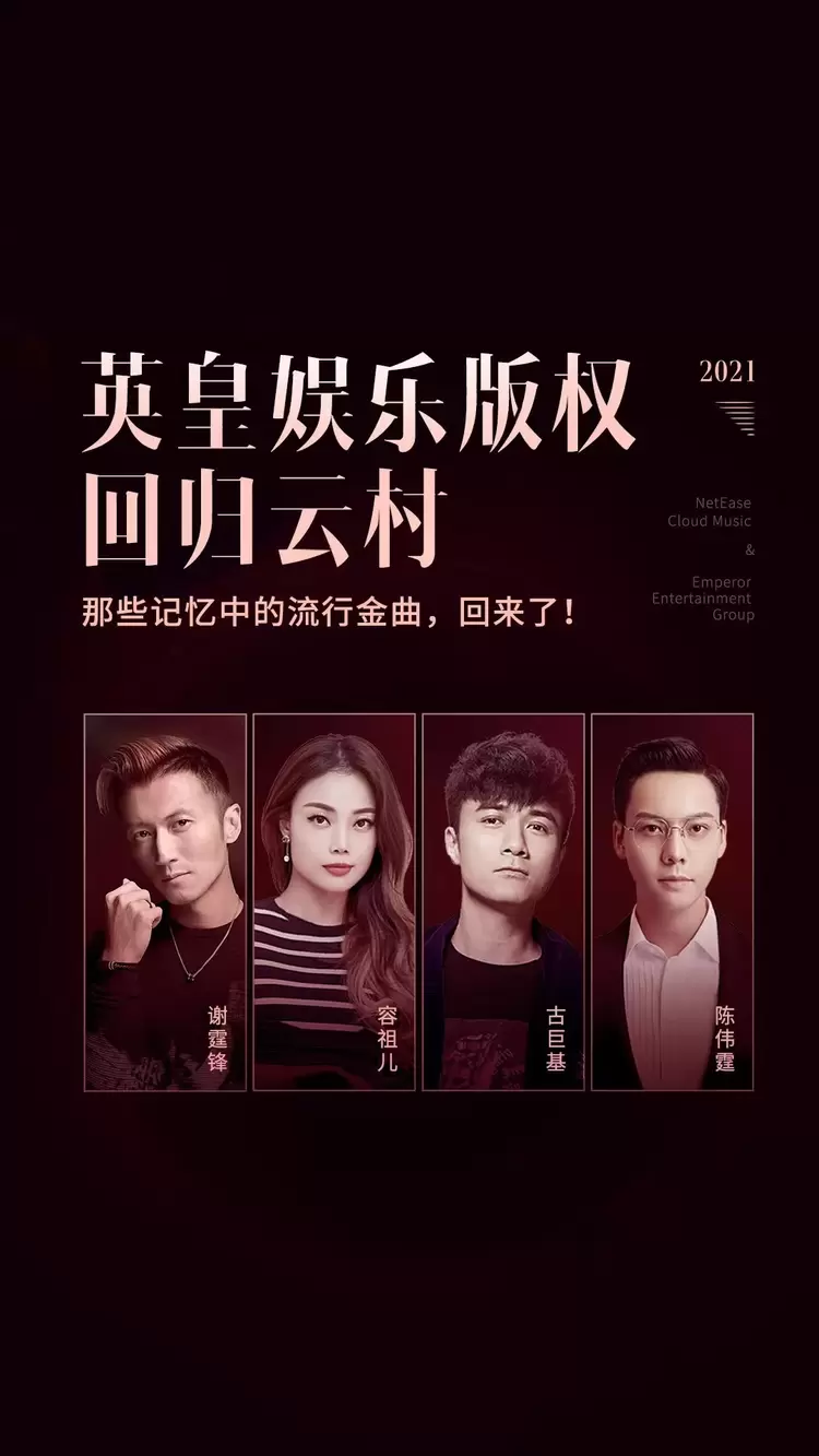 近日,网易云音乐与香港英皇娱乐达成战略合作,双方将在音乐版权、音乐演出等领域展开深层次、多样化的合作。目前,网易云音乐已获得英皇集团旗下全量音乐版权授权,包括谢霆锋、容祖儿、古巨基、李克勤等众多知名艺人作品。未来双方将充分发挥各自优势,为中国音乐爱好者提供更多优质音乐内容,推动中国华语音乐蓬勃发展。