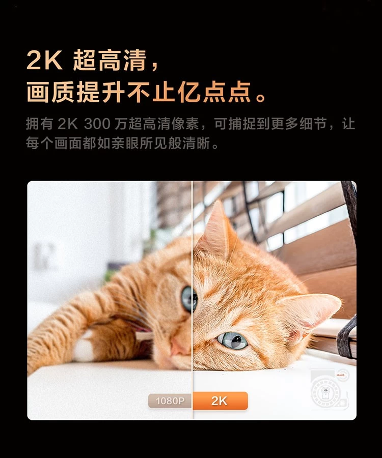 同时Aqara 智能摄像机 G3 火星探索版的科技能力也是毫不逊色,2K 超高清画质、360度全景巡航、增强红外夜视……