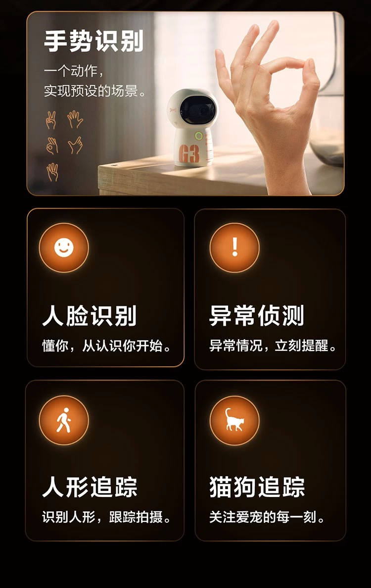 诞生于2021年的Aqara 智能摄像机 G3,始终是创新科技的探索者。无论是AI 智能识别,还是手势识别,无疑都是在给用户带来最好的人机交互体验。