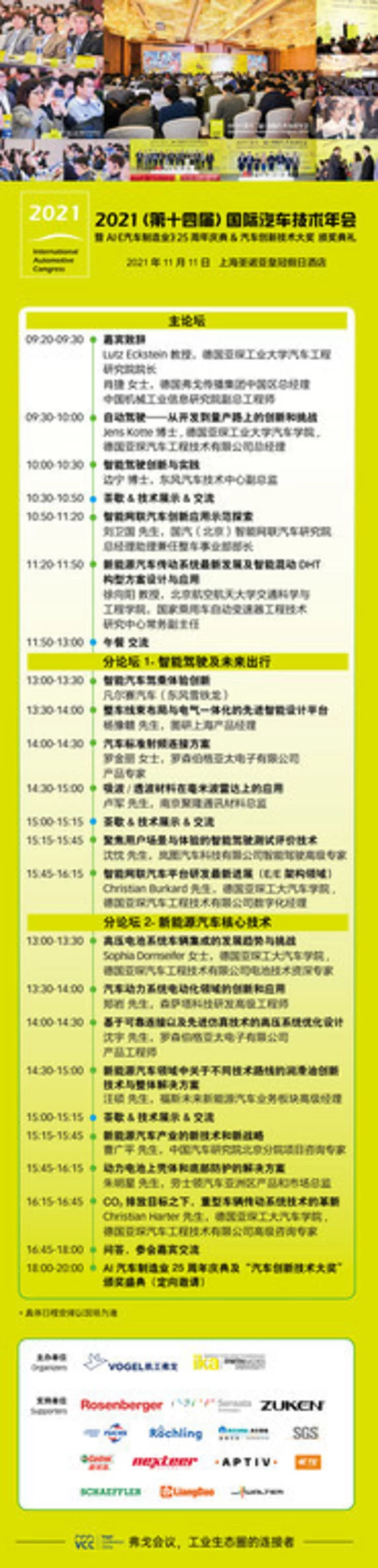 IAC2021当天除了白天的主论坛、专题分论坛之外,晚上还将举行AI《汽车制造业》25 周年庆典、汽车创新技术大奖颁奖典礼等。