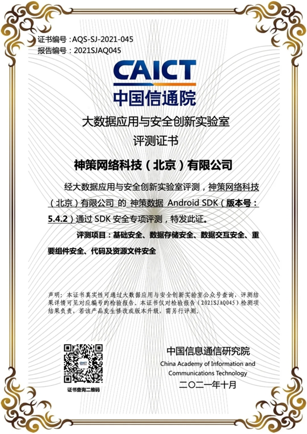 神策数据通过中国信通院 SDK 安全评测,正式获得 SDK 安全认证证书