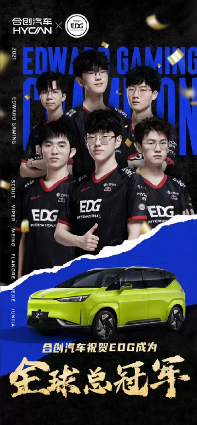 今年4月,合创汽车与国内电竞俱乐部的头部IP——EDG签署战略合作协议,共同探索智能出行与电竞跨界新玩法。与过去汽车品牌跨界合作仅仅局限在营销层面上不同,双方则是共建平台与用户“共创”产品,这是国内首个汽车品牌与电竞品牌的深度定制合作,标志着合创汽车正式开启潮流化的转型之路。而11月7日,在2021年英雄联盟总决赛上,EDG夺得世界冠军,合创汽车随即“隔空送车”,让合创Z03凭借“冠军座驾”的话题标签再度出圈。
