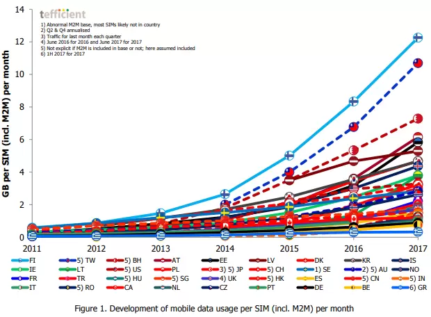 Tefficient发布2017移动数据消费增长率报告:美国垫底
