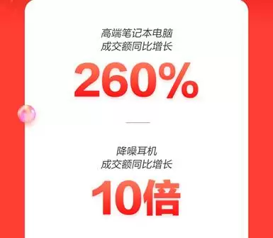 随着消费者的生活水平日益提升,消费观念日趋理性,品质与服务兼备的高端新品逐渐成为大家剁手的高频品类。例如高端笔记本作为生产力工具,以其出色的性能配置深受用户青睐,晚8点开场仅10分钟成交额便同比增长260%;而拥有超强降噪能力的降噪耳机日益普及,已经成为当代年轻人“大隐隐于市”的必备物件,成交额同比增长高达10倍。