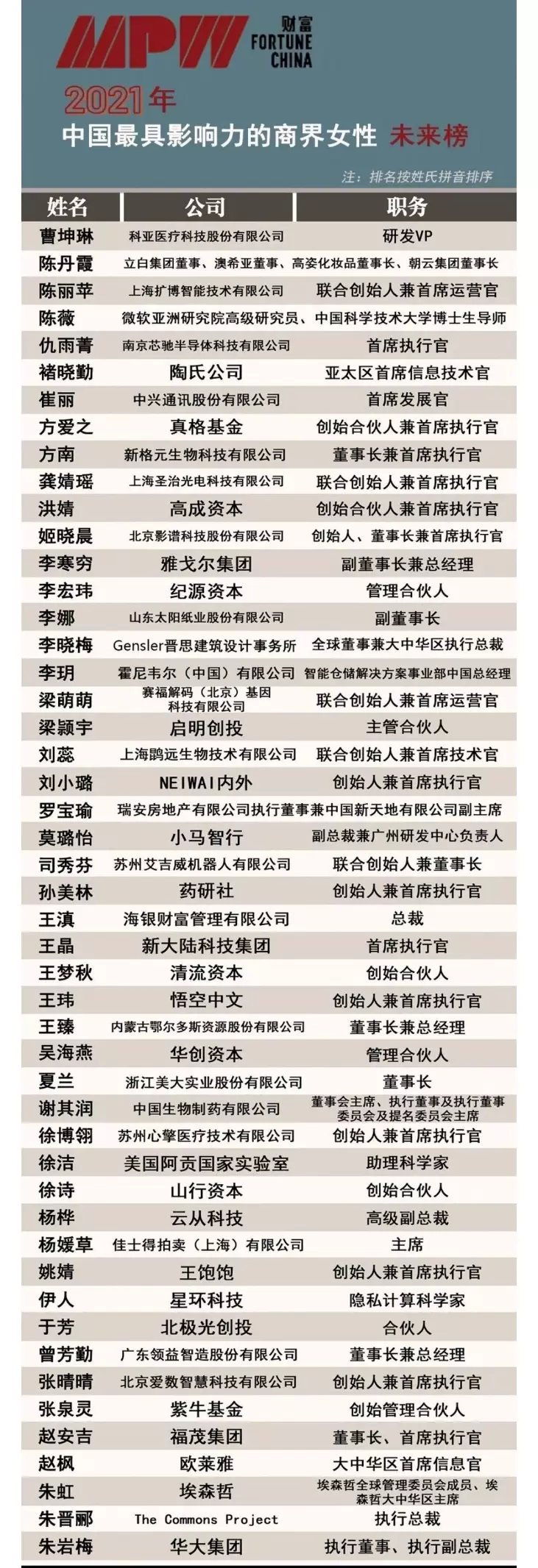 据了解,中国最具影响力商界女性榜单始于2010年,此后每年更新,中国商界几乎所有重要的女性领导者都在这份榜单上有迹可循。和往年相比,今年的榜单显得更特别。正如主办方所言,在充满不确定性的一年里,她们面临全球疫情挑战、监管打击以及许多其他重塑当今经济的力量,但好在,这些商界女性勇敢置身其中,并作出了巨大的贡献。