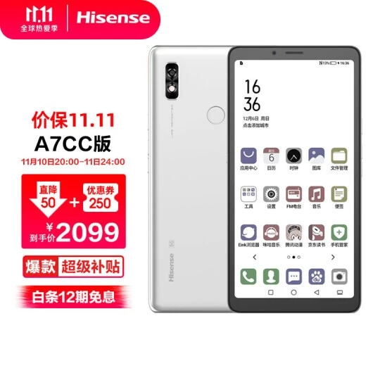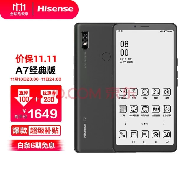 此前颇受广大阅读爱好者欢迎的海信A7 CC彩墨版,在本次活动中低至2099元,同时还有长达12期的白条免息和京东读书VIP月卡赠送,晒单再享京东E卡。该产品之所以能成为读者圈中的爆品,源自其采用了第二代彩墨印刷式电子纸技术,在更丰富的色彩和更精细的显示条件下,依然提供舒适护眼无蓝光的阅读体验,而且高性能、5G、Hi-Fi、长续航、快充等优势一机兼得,各项优异表现堪称护眼手机产品的全能选手。