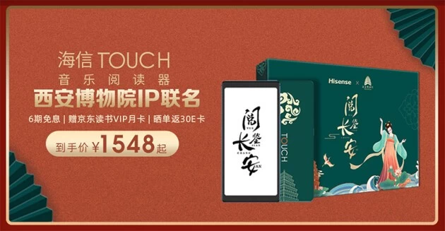 配备护眼水墨屏的海信TOUCH音乐阅读器凭借清晰无蓝光的显示效果带来出色的阅读体验,智能化的亮度与色温自动调节功能配合温和的暖色温背光灯,无论白天还是黑夜都能舒适随心阅读;加上独有的旗舰级解码及独立运放芯片,更让其拥有惊艳的天籁音效,令你沉浸书海,乐在其中。活动期间,该产品大幅优惠,并附送京东阅读VIP和白条六期免息,而西安博物院礼盒版还加赠联名保护壳、手账、贴纸、书签以及京东读书VIP年卡,到手价仅1548元,更为超值。