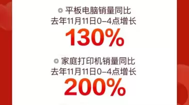 随着“双减”政策贯彻落实,如何减轻孩子们的课业负担、有效提升学习效率成为家长和老师共同关注的问题。在此背景下,平板电脑作为家长帮助孩子培养自主学习习惯的“不二法宝”,在京东11.11疯狂4小时迎来销售热潮,销量同比增长130%。同时,随着孩子打印学习资料、家长随时准备工作资料等居家打印需求增多,带动家庭打印机也实现销量200%的同比增长。