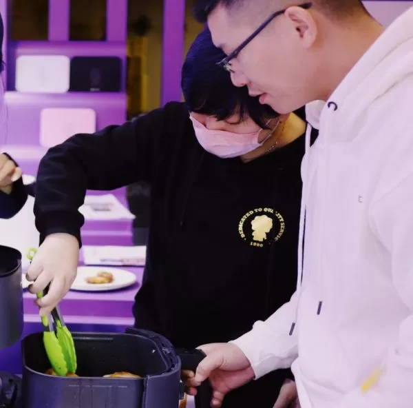 在最受欢迎的产品体验区里,VeSync作为北美小家电大牌,也充分展示了自身的产品实力。本次VeSync携明星产品V3、V5空气炸锅及首发新品鹅颈壶来到快闪店现场。现场不仅为苏宁员工提供了上手使用V3、V5空气炸锅烹饪美食的体验机会,还有专门的工作人员,提供更专业的产品讲解,深度触达他们对空气炸锅这一品类的兴趣。据悉,快闪店当天,VeSync以优质的产品体验吸引了许多苏宁员工内购下单。