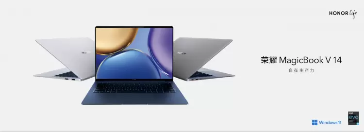 荣耀MagicBook V 14,带来诸多业内领先技术:首款在PC产品上搭载500W高清广角双摄,仅用三年时间,打破PC行业15年不变的摄像头100W时代,带来非凡的商务音视频会议体验;10.7亿色触控全面屏,结合十点触控、Win11,带来更高的办公效率和视觉享受;最新升级的“多屏协同”新增了PC和平板间的跨系统协同,让PC具备了与手机、平板、智慧屏信息无缝互联的能力,成为荣耀终端家族继手机之后,又一款枢纽级互联设备。