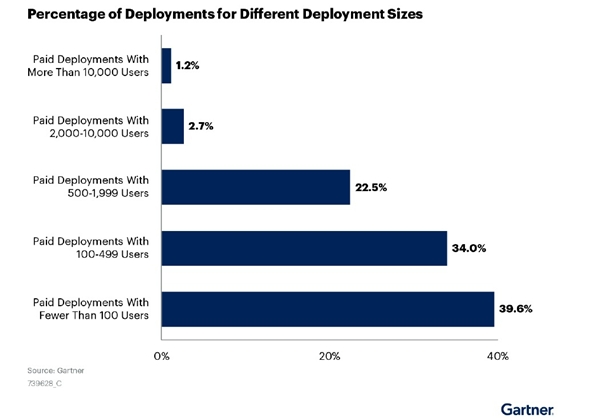 (协同工作管理用户规模占比分布 | 来源:Gartner《Market Guide for Collaborative Work Management》报告)