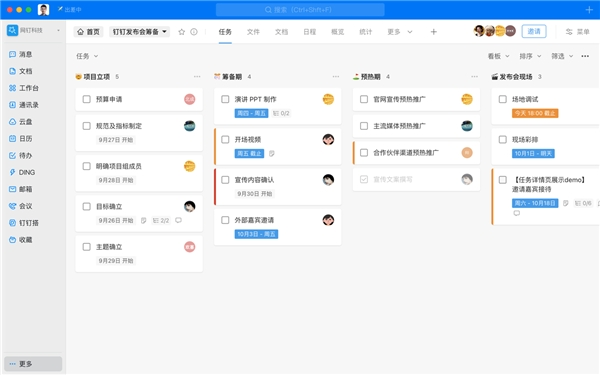 目前Teambition已经与钉钉全面打通,用户可通过钉钉项目获取其产品能力,两者的融合也为每一位用户提供了新生产力工具。Teambition与钉钉群、文档、审批等产品的连接,为用户提供了更轻量的工作方式,项目进展可以直达群聊,项目协作中创作的文档随手沉淀为知识,任务流转清晰透明,将一件“事”相关的所有资源聚合在一处。