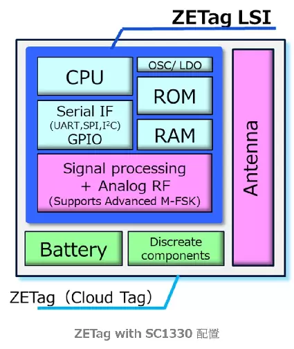 索喜科技Socionext, Techsor 和ZiFiSense 推出”ZETag”芯片,新芯片支持下一代“Advanced M-FSK”调制方式,在LPWA通信中实现行业领先性能,是专为利用ZETA 通信的新型云标签而开发的。