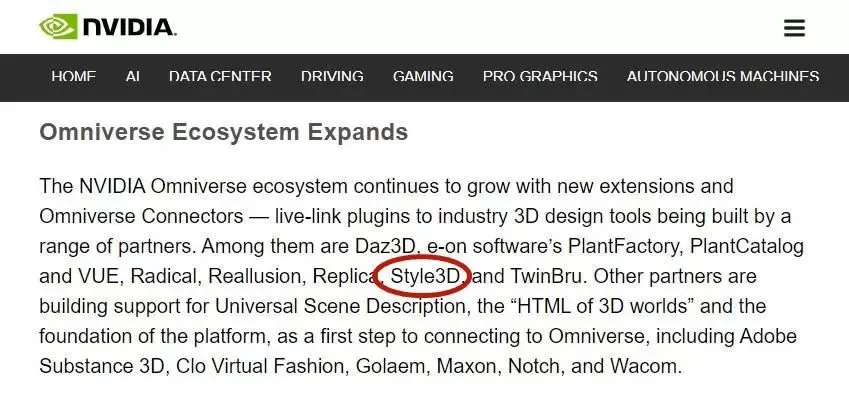 而当老黄提到Omniverse的生态系统扩展时,你是否看到了一个熟悉的身影?没错,Style3D也出现在了Omniverse系统内。