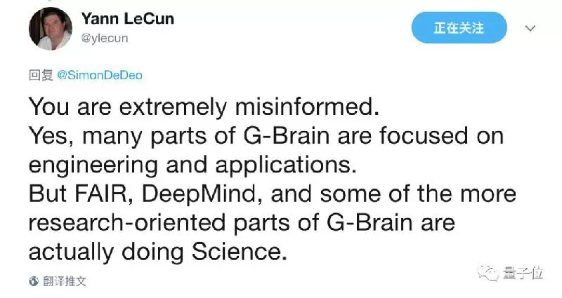 倒是Facebook的首席AI科学家Yann LeCun,按捺不住反击了下。他对DeDeo说: