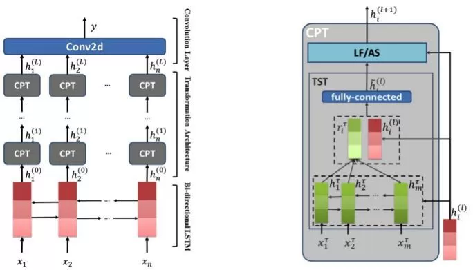 右图则展示了一个CPT 模块的细节,其中有一个全新设计的TST 组件,可将目标信息整合进词表示中。此外,其中还包含一个上下文保留机制。