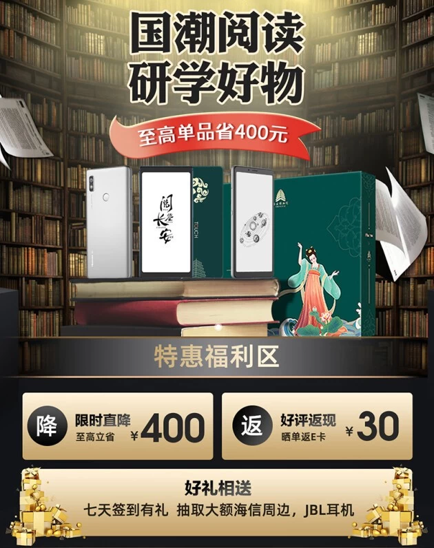尽管双十一已谢场,但好物特价不打烊!海信手机京东自营旗舰店近日上线“国潮阅读·研学好物”特惠活动,旗下部分护眼阅读产品直降400元,还有晒单返现、签到抽奖等活动,JBL耳机、海信周边等精美礼品等你来领。其中,海信TOUCH音乐阅读器再度特价返场,堪称错过双十一后,挽救后悔的绝佳时机。