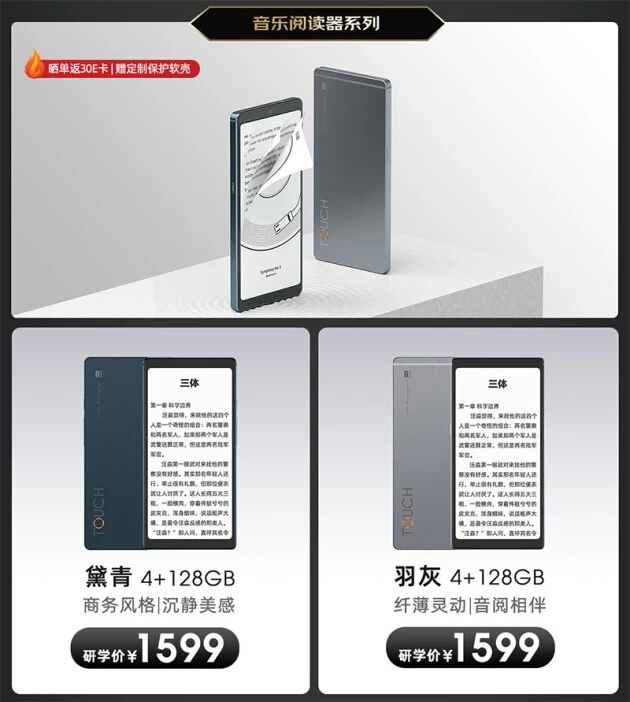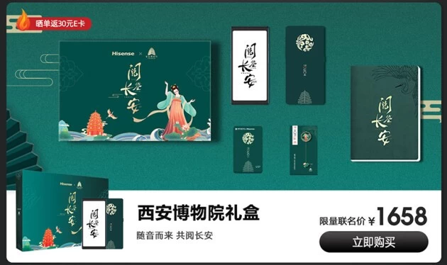 该产品拥有黛青、羽灰两种大气沉稳色彩可选,活动特惠价仅1599元,并限量附送官方保护壳。并且值得一提的是,海信TOUCH音乐阅读器独有的西安博物院礼盒版还加赠更多大礼,其中包括西安博物院联名的保护壳、手账、书签、贴纸以及京东读书VIP年卡等礼品,更多礼遇仅需1658元,晒单再送京东E卡。