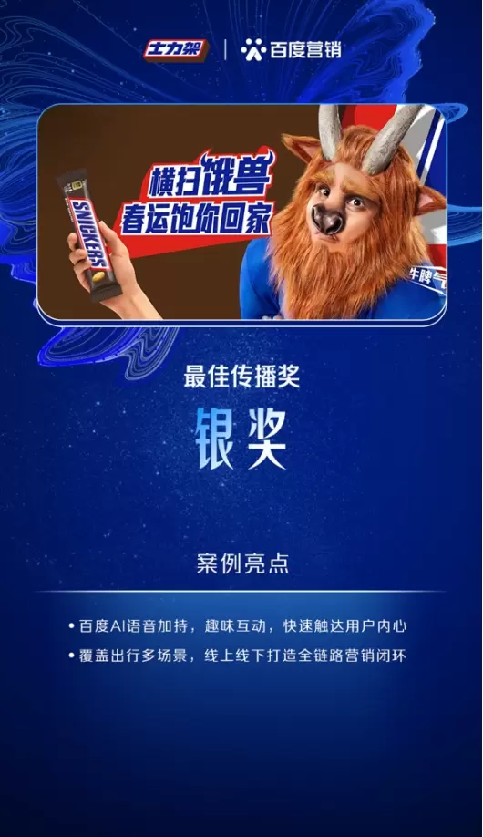 2021年春运,士力架打造全新“横扫饿兽做回自己” Campaign,携手百度营销针对“自驾回家”和“置办年货”两大节日诉求的用户,打出了一套“AI营销组合拳”。