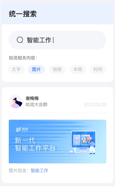 身处信息海洋中的我们,在日常工作中会面对大量的文字、图片、文档等各种形式信息,不同形式的信息容易形成数据孤岛,在整合、搜索、应用上需要分类处理,导致多应用切入切出、效率低下。百度如流升级搜索能力,「统一搜索」有效解决数据孤岛问题。