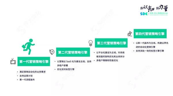 在神策数据内部,营销策略引擎的演化可以分为四个阶段: