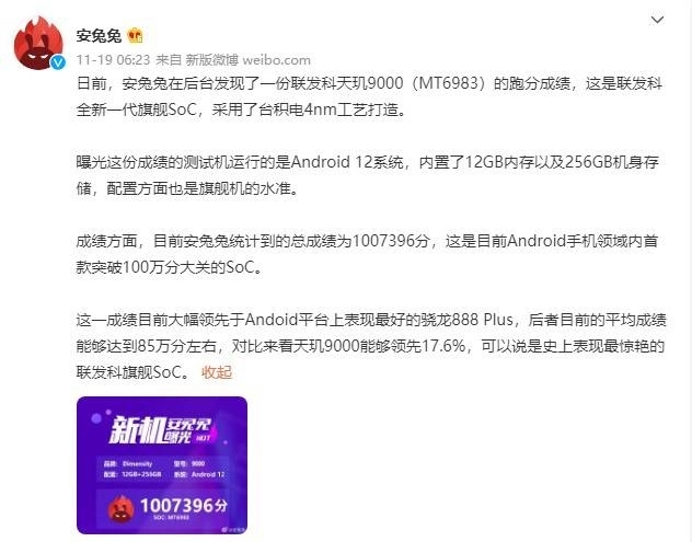 联发科天玑9000发布!安兔兔:史上表现最惊艳的联发科旗舰SoC