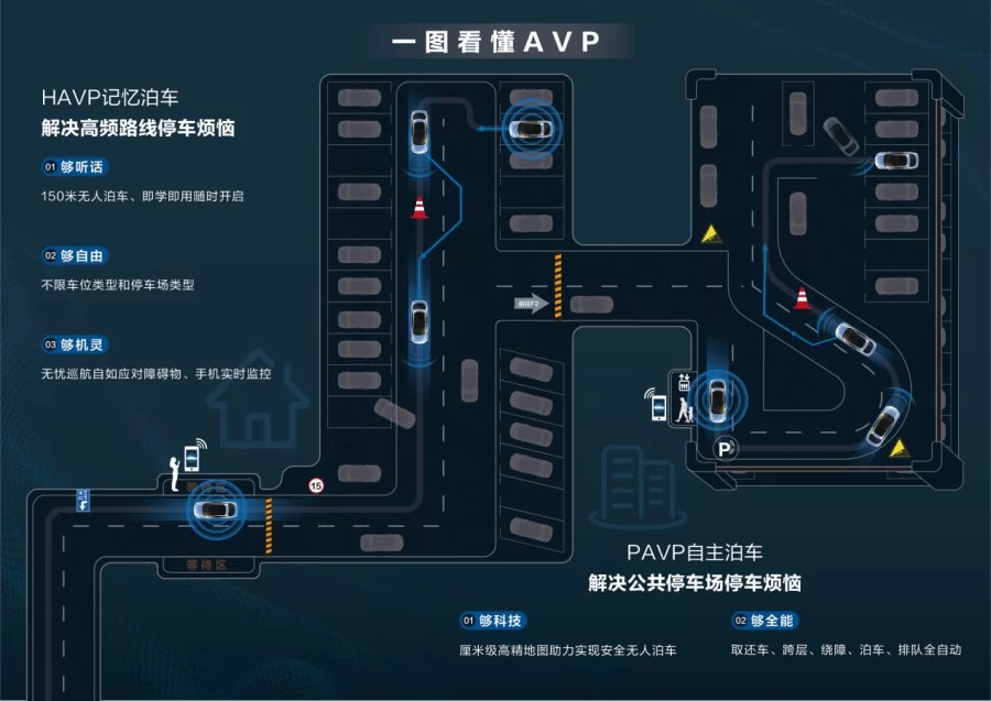 作为率先交付给量产车企的自主代客泊车产品,百度AVP的技术能力基础来源于百度Apollo 8年自动驾驶技术的研发积累,具备成熟的HAVP功能,旨在解决用户在高频行驶场景,例如家庭、公司、商场等场所的泊车烦恼。传感器搭载5个环视摄像头+12个超声波雷达,通过以视觉感知为核心的算法,可实现最长150米距离的“无人”泊车,即用户驾驶车辆进行了一次路线学习后,车辆便可自己找到车位准确泊入。在这过程中用户可通过手机APP,及时查看车辆位置以及车载摄像头检测到的道路环境变化。如过程中遇到障碍物,车辆也可自主进行闪避或停车。