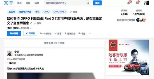 而且好评不光来自媒体,OPPO Find X 的发布,甚至能在著名的“互联网反营销阵地”知乎社区上掀起了一股“惊艳”狂潮,随便一个相关的话题就有超过380万的阅读,其热度可见一斑,几乎成为了整个知乎社区在手机领域的全民话题。